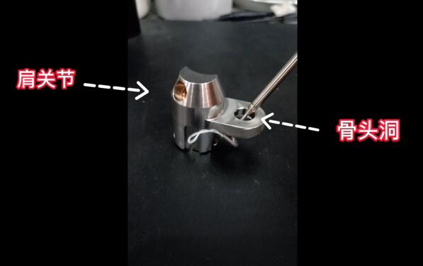 肩關(guān)節(jié)手術(shù)縫合的時候,會用到這樣一個穿線器,直接從打好的骨頭洞里面穿過去,然后用鑷子把這個線解鞋帶一樣一拉一系,就縫合好了。